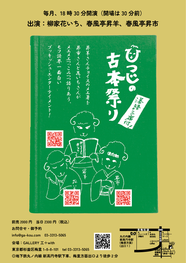GALLERY工+withは、人と物と事を繋ぐ、木々に囲まれたスペースです。(演芸のイベントについては梅里一八八という屋号も使用しています。)最寄り駅は新高円寺より徒歩3分。また、有限会社工企画として、展覧会や落語会、音楽会の企画の主催や協力もしています。日常生活に「クリエイティビティ」を取り入れることを提案します。どうぞ宜しくお願いいたします。