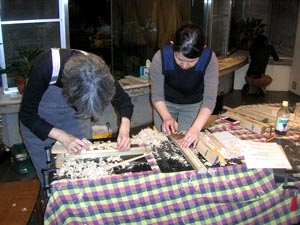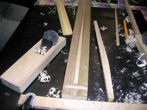 | 鉋で削る時は無我、熱中します | 削り終えたら、天然染料で染色します |