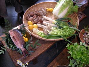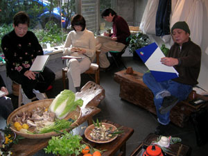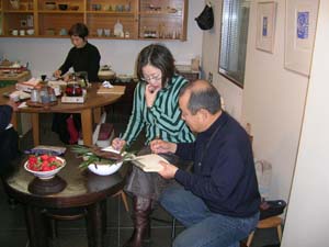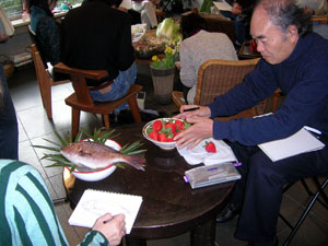 | スケッチ素材は鍋の食材 | 描き方を教えている本山先生 |