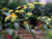 そう、そう、漢方では、ウイキョウと呼ぶ、フェンネル。この実を口に含んで噛むと、天然仁丹。気分がなんかすスッとするような気がします。このフェンネルの花が咲き始めると、いよいよ梅雨の季節に入るのです。 そして、夏野菜の収穫の日々へ。キューリもナスも、ちょっと採り忘れると、すぐにお化けキューリ、お化けナスになってしまうのであります。四季折々、カントリーライフは、お天道さままかせ、風まかせ。都会にはない楽しさでいっぱいでした。 |