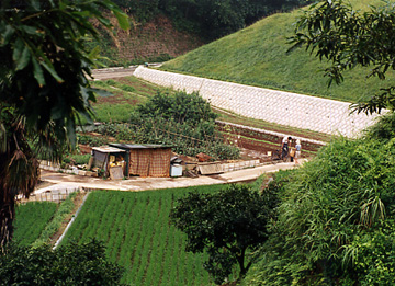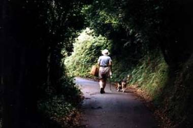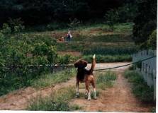 わが家から私たちが借りた畑までの道 と、 一番元気だった頃のラッキーです。 |