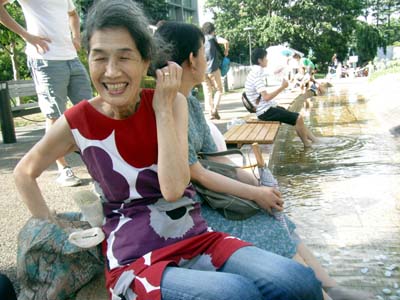 これは、ミッドタウンの美術館に行った帰り、庭を流れる水路で、足湯ならぬ、足水をやっていたので、しばしの涼を楽しみました。