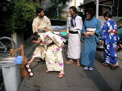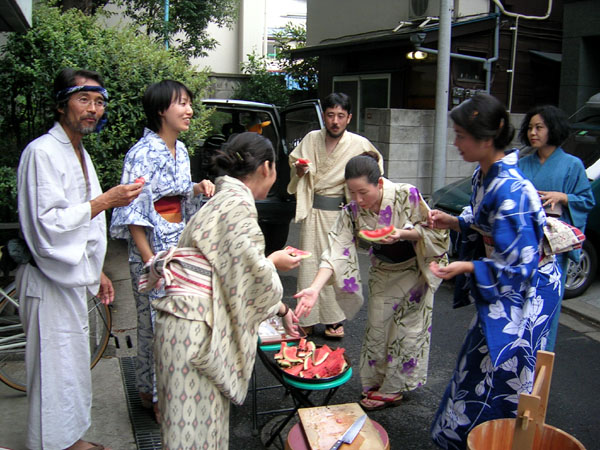 いつだったか、粋曲・三味線教室の師匠、柳家小春さんの発案で、そのお弟子さんや、ギャラリー工の作家さんが集まって、打ち水の会などを催したことがありました。