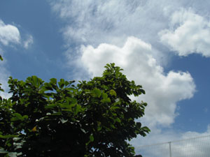 エントランスの白木蓮の梢の先の夏雲です。CoCoの散歩コース、宗延寺というお寺には、夏になると水瓶に植えられた蓮が美しい花を咲かせます。