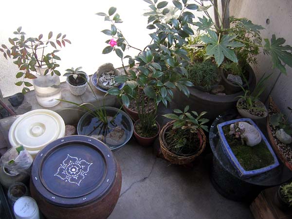 リビングの横のベランダに造った自己流坪庭。 |