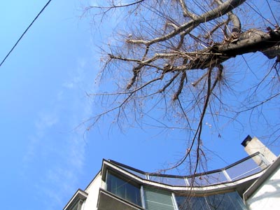 | このビルの良さは、何といってもこの大ケヤキ。 そして、青梅街道からひと路地入っただけなのにとても静かなことです。 |