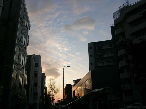 | 五日市街道上空は、うっすらと夕やけ。いい感じだったのでスナップしました。 |