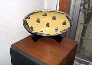 | 富士山も亡父の絵です。龍の柄の酒器に千両を挿してみました。 |