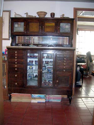 | このキャビネットは、歯科医だった家人の亡父が診療道具などを入れていたキャビネット。自分たちで塗装し直して、古伊万里など入れています。 |