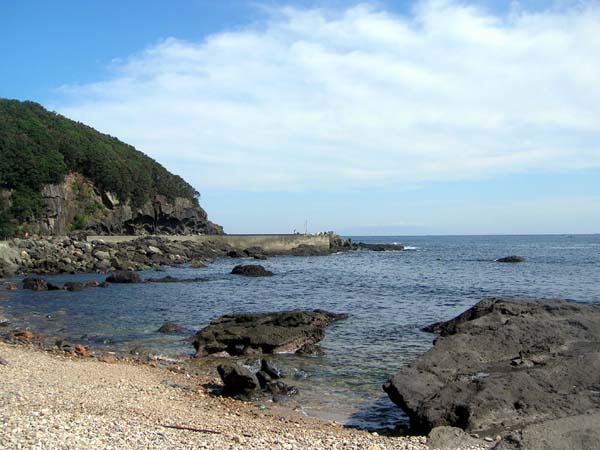 | 新潟県糸魚川市姫川流域の海岸。この時は、私はいかなかったのですが、 富山県の宮崎・境海岸(ヒスイ海岸)には私も行って探石しました。 |