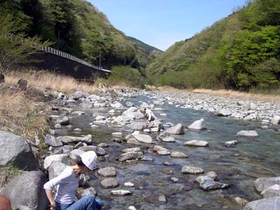 | 秋川渓谷に行った時です。多摩川の支流の中でも最大の支流といわれるのが秋川。その内、網代橋(あじろばし)から檜原村の南・北全長約20kmの部分を特に「秋川渓谷」と呼ぶのだそうです。 |